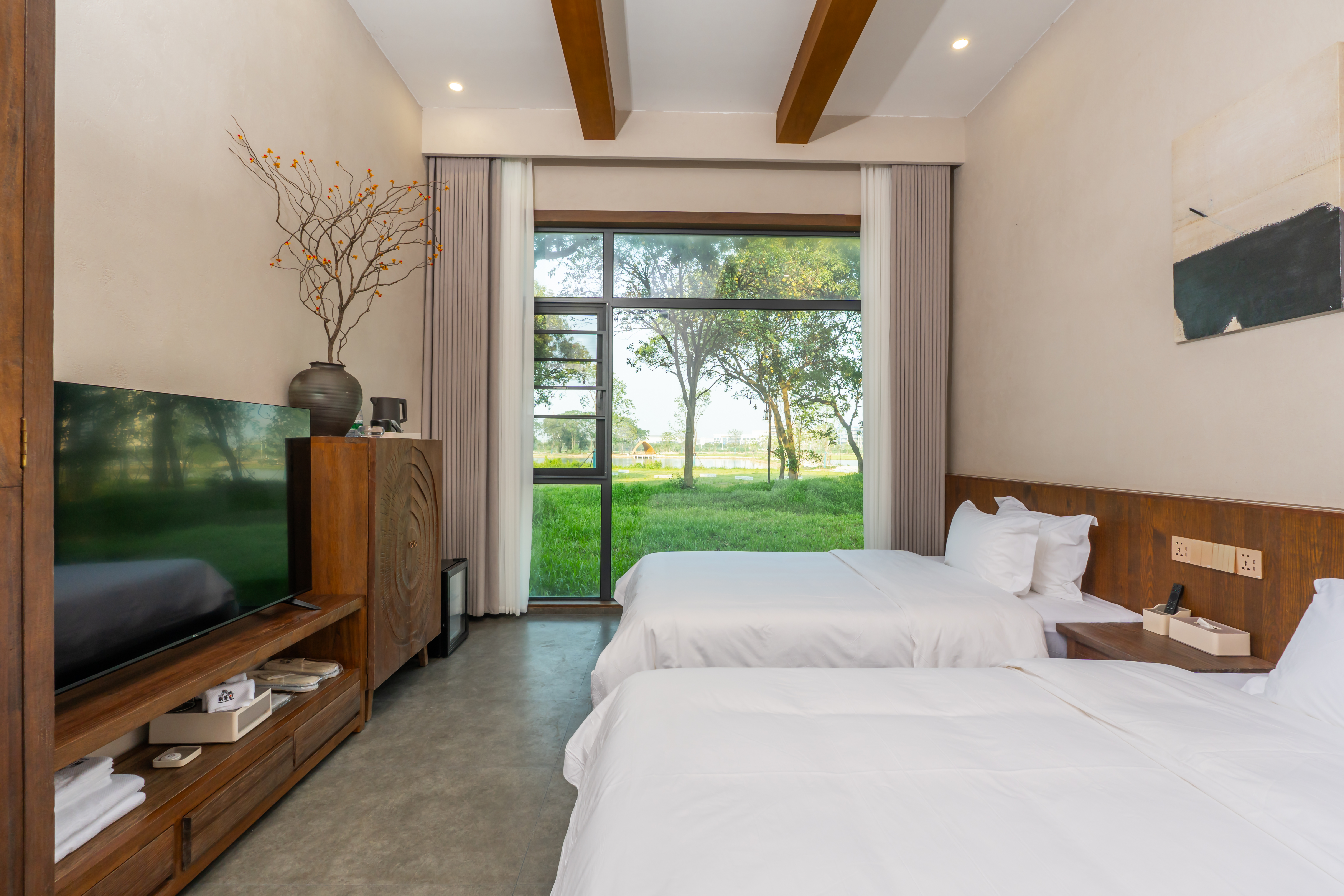 五福人家双床房(原木家俱+五区床垫+落地大窗)